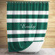 Modern Green Stripes Pattern Name Shower Curtain