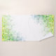 Modern bath towel set done in white with a colorful tones of green and teal tile pattern that gradually fades out. Customize this product to add your own text.