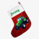Modern Green Tractor on Red Large Christmas Stocking