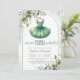 Modern green tutu dress greenery and gold invitation