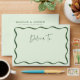 Add a stylish touch to your wedding suite with these Modern Green Wavy Frame personalized wedding envelopes. The front of the light green envelope features a green wavy frame border with "Deliver To" displayed in a handwritten green script. The retro wedding envelope reverses to display your names and return address on the flap in bold green lettering. Designed to coordinate with our Modern Wavy Frame wedding collection.