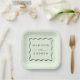 Add a stylish touch to your wedding reception, rehearsal dinner, engagement party, or wedding shower with these Modern Green Wavy Frame paper plates. The retro wedding paper plates display the couple's names in bold green lettering surrounded by a green wavy border contrasting with a light green background. The trendy wedding paper plates were designed to coordinate with our Modern Wavy Frame wedding collection.