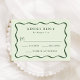 Introducing our RSVP card from the Modern Wavy Frame collection, where sophistication meets style. Featuring the signature dark green wavy frame against a light green background, this retro RSVP card adds a touch of style to your wedding suite. Simplify your planning and elevate your wedding experience with our Modern Green Wavy Frame RSVP card.