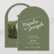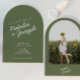 Modern Green Whimsical Summer Photo Wedding Arched Invitation