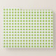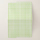A plain but striking apple green background has white vertical and horizontal stripes on it forming a pretty checked gingham pattern. The inside and outside covers may be changed to any color to any of your choice.