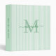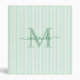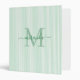 Modern Green & White Stripes Monogram Name 3 Ring Binder