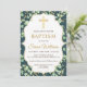 Modern Greenery Gold Glitter Baptism Invitation
