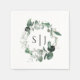 This modern greenery white wedding monogram napkin design features easy mix and match coordinating styles in black and white with delicate greenery elements adding graceful flourish around simple sophisticated typography and lovely minimal calligraphy script. The watercolor eucalyptus and other botanical leaves arch beautifully throughout, with dark emerald fading in an ombre effect to light mint green - to add just enough of a classy touch of rustic nature to a neutral contemporary backdrop. This gorgeous collection would perfectly create an air of polished elegance for your formal or casual dream wedding or other special event. As with all of our designs, if you have any questions or special requests, please reach out.