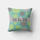 Modern Grey and Green Bubbles Monogram Throw Pillow