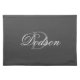 Modern Grey And White Script Monogram Personalized Cloth Placemat