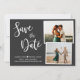 Elegant modern handwritten calligraphy two photo save the date announcement card in dark grey. Minimalist wedding design feature an elegant huge cursive handwritten calligraphy script with text „Save the Date” and two couple photo with frame on dark grey background color. Between names is a cute little heart shape. If you need help or matching items, please contact me.