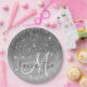 Modern Grey Glitter Sparkles Personalized Name Paper Plates