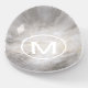 This personalized paperweight features a trendy grey marble texture and white monogram in a round frame.