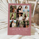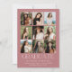 Celebrate your graduate’s milestone with this elegant minimalist graduation announcement featuring a grid layout of nine personal photos. "Graduate" is displayed in modern white lettering, with the graduate’s name, school, graduation year, and future plans showcased below on a chic dusty rose background. The reverse side features a timeless dusty rose and white striped pattern for a stylish touch. Perfect for both high school and college graduates, this multi-photo graduation announcement is a beautiful way to share their achievements with family and friends.