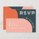 A modern wedding RSVP enclosure card bursting with pop of color orange, teal blue green and peach and groovy arch designs for a boho retro 70s vibe. It comes with a QR code to RSVP or to direct your guests to your wedding site.