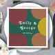 These modern wedding napkins feature retro calligraphy on a groovy abstract arches background! These napkins are perfect for couples who want to add a touch of fun and personality to their wedding reception decor while also providing a practical and useful item for their guests. Our artistic design is fully customizable, meaning you can add your own personalized touch to make your napkins truly unique. Choose from a variety of different colors to match your wedding theme or personal style. Not only does our design feature retro calligraphy and groovy abstract arches, but it also contains fun facts about the bride and groom! Share interesting tidbits about your relationship, hobbies, or favorite things for your guests to enjoy while they use the napkins. Our high-quality printing process ensures that your napkins will look amazing and professional, while still being soft and absorbent enough to handle spills and messes. With our customizable options and vibrant design, your guests will be delighted to use these fun and informative napkins throughout your wedding reception. Overall, our modern wedding napkins with retro calligraphy on a retro colorful groovy abstract arches background, and fun facts about the bride and groom are a must-have for any couple who wants to add some personality and fun to their wedding reception decor while also providing a practical and useful item for their guests.