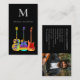 Modern Guitar teacher custom photo business card. This unique vibrant guitarist business card features psychedelic acoustic, semi-acoustic, and electric guitars in a dazzling array of colors against a striking black background. Complete with a personalized photo, monogram, your name, contact details all rendered in stylish typography, this card is the perfect introduction for guitar tutors, guitarists, professional musicians, entertainers, and music teachers. Original artwork by artist Catherine Sweetman.