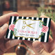 Modern Hair Stylist Girly Gold Pink Floral Striped Business Card