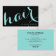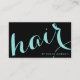 Modern hair stylist script black and blue business card