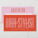 A modern hair stylist gift card designed with elegant script typography and a pink and red orange color palette. This modern and stylish gift card is perfect for salons and beauty professionals looking to offer a chic, elevated gifting experience.