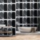 The modern wallpaper features a sleek, minimalist pattern of half hearts, presented in elegant monochromatic tones of black, grey, and white. Its design offers the flexibility to customize the background color, seamlessly complementing your space's unique color palette. Whether for home or business settings, this modern design radiates elegance and sophistication, transforming any environment into a stylish and refined space.