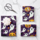 Modern Halloween Bats Pumpkin Ghost Pattern Purple Wrapping Paper Sheets