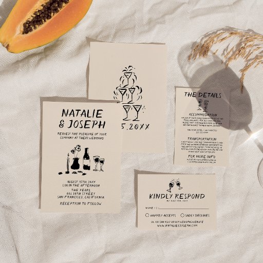 Modern Hand Drawn Champagne Retro Quirky Wedding Save The Date