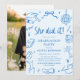 Modern Hand Drawn She did it Blue Graduation Party Invitation