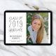 Modern hand lettered minimalist graffiti text graduation announcement with single photo. Easy and affordable do-it-yourself template. Add your own photo and custom text, or choose "Customize It" to change the layout, size, style or photo options. Optional hand-drawn stripes backer can be altered if you wish to add more photos, thank you message, or graduation party information. Note: Shown on mini 3 x 5 card -- more sizes available.