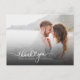 Modern Hand-lettered Script Photo Thank You Postcard featuring a modern minimalist photo thank you cards with script hand lettered "thank you" and a love heart.