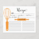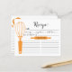 Contemporary Bridal Shower Kitchen Recipe Cards featuring a stylish hand lettered black typography script font with a tangerine orange whisk, rolling pin & hand mixer. The front of our recipe card offers room for a recipe title, from the kitchen of and ingredients space. Flip our recipe card view directions. Visit our shop for matching bridal shower invitations Available in our shop in a large assortment of popular wedding shower colors. Perfect bridal shower invitation insert for a stock the kitchen bridal shower.