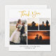A great and thoughtful way to thank your friends, family, and coworkers who graced you their presence on your your wedding day with this modern photo thank you cards with script hand lettered gold effect "thank you". Photos on both the front and the reverse of this card