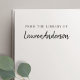 Custom-designed bookplate rubber stamp featuring your personalized name in modern hand script.