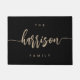 A great gift for newlyweds or new homeowners, our personalized welcome doormat in chic and durable black features your family name or surname in hand lettered script typography.