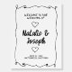 Modern hand written and whimsical black & white Wedding Welcome sign . This elegant unique welcome to our wedding and modern contemporary wedding welcome sign features a minimalistic design with bold font hand written WELCOME TO THE WEDDING OF . With white background and hand drawn hearts .And whimsical black elegant bride and groom's names inside wavy hand drawn border frame. Make Your wedding classy and chic with this wedding sign that is perfect for your big day to welcome your invitees with charm and class. ! So Customize the sign with the name of the bride and groom, and the date, city and state of the wedding.