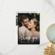 Elegant Hand Lettering Wedding Photo Thank You Postcard. Modern Stylish wedding thank you postcard template featuring a full vertical photo on the front with text "Thank You" in a hand written typography script font in white on the picture. Personalize your name and thank you message. If you prefer to handwrite your note, just delete the sample text to make more space. If You need help or matching item, please contact designer!