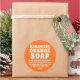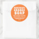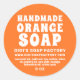 Modern and minimal handmade orange soap sticker with your name and website or address in white simple stylish typography on a vibrant orange background. Simply add your business name, the product name, ingredients, weight and your website or address to the label. Exclusively designed for you by Happy Dolphin Studio. If you need any help or matching products, please contact us at happydolphinstudio@outlook.com.