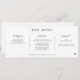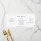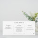 These unique horizontal wedding menus feature a modern handwriting script in a simple black and white design. Personalized with the couple's names and wedding date, they add a stylish and contemporary touch to your reception, combining elegance with a personalized flair for your special day.