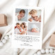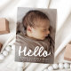 Welcome your little one with this modern and heartfelt birth announcement featuring your baby’s vertical photo and the word “Hello” in a handwritten white script. Your baby’s name and birth stats are displayed below in a clean, contemporary font. The back of the card includes a 4-photo square collage across the top, set against a white background, with space below for a personalized message. A stylish and photo-forward design that’s perfect for introducing your newest arrival to friends and family.