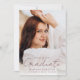 Announce your graduate's achievements and plans with this stylish, modern photo graduation announcement. The front of the announcement displays the graduate's full-bleed vertical photo. "Graduate" is displayed in a trendy, handwritten maroon script. Personalize the announcement with the graduation year, graduate's name, and school name. The announcement reverses to display an additional photo with your custom text below in white lettering with a solid maroon background. This 2 photo graduation announcement is perfect for high school or college graduations.