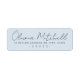 Modern, light dusty blue return address labels with your name in a handwritten style font and the address below in a modern sans serif font. You can change the background and font color to any custom color with the customization tool.