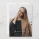 Announce your graduate's achievements and future plans with this stylish, modern photo graduation announcement. The front of the announcement displays the graduate's full-bleed vertical photo. "Graduate" is displayed in a trendy, handwritten white script. Personalize the announcement with the graduation year, graduate's name, and school name. The announcement reverses to display an additional photo with your custom text shown below in black lettering. This 2 photo graduation announcement is perfect for high school or college graduations.
