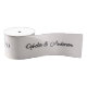 Elegant personalized wedding ribbon featuring a classic pearl white background with alternating monogram and full name text in stylish black script and serif fonts. Perfect for adding a refined and custom touch to wedding favors, gift wrapping, décor, or event packaging. This repeating text design provides a seamless, luxurious look while offering full customization for initials and names. Ideal for weddings, anniversaries, engagements, or special events, this timeless ribbon design complements a wide range of color schemes and celebration styles with its clean, romantic aesthetic.