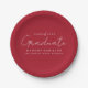 Elevate your graduation party decor with our stylish graduation paper plates! Featuring a chic handwritten white script and red background, these paper plates add a touch of sophistication to your celebration. Personalize them with the graduate's name, graduation year, and school name. Whether you're serving snacks or drinks, these plates are perfect for adding a personalized touch to your high school or college graduation party. Celebrate your graduate's achievements in style with our graduation party paper plates!