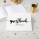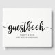 Simple Modern Handwritten Script Wedding Guestbook with "guestbook" typography to go with your elegant wedding. Sparkle & Glitter © The design features the bride and groom names and wedding date script that are customizable. Shown in black and white but can be customized to your wedding colors for the text and background. Add any other graphics, photo or monogram to you personalize this template.