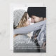 This modern Save the Date Card begins with your couple's photo. Save the Date is written in large stylish white calligraphy. Two lines of text below let you personalize your message. A special overlay guarantees that your white text will pop no matter your photo.
