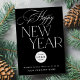 Elegant, trendy typography script custom business logo black and white Happy New Year corporate holiday card template with your text and company name.
