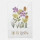 He Is Risen. Resurrection Sunday Easter kitchen towels with a beautiful modern floral design with purple and yellow Easter colors. You can change the text/font styles/colors.