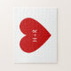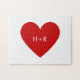 Create your own Modern Minimalist Couples Monogram with Red Heart Jigsaw Puzzle - Customize the template with your heart or background color, monogram or text - with love.