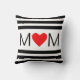 Modern Heart Mom on Black & White Striped Throw Pillow